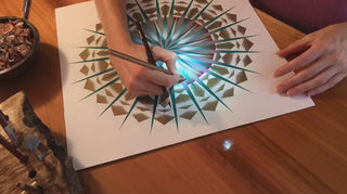 Centered is the embodiment of inner sanctuary—a living portal to that empowered place within where you can simply be who you truly are. This sacred geometry mirrors the very process of creation itself, beginning from the center point and expanding outward in perfect radial harmony. Like the Anastarr’s own creative process, this mandala invites you to start from your own center and consciously expand into the fullness of your being.